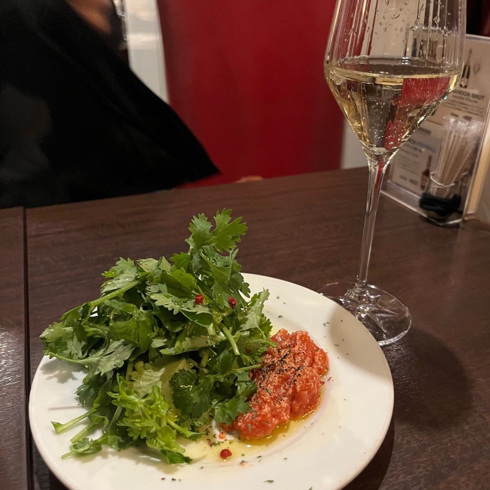 パクチーと炙り明太子は意外な組み合わせでしたが、これが最強に合う😍