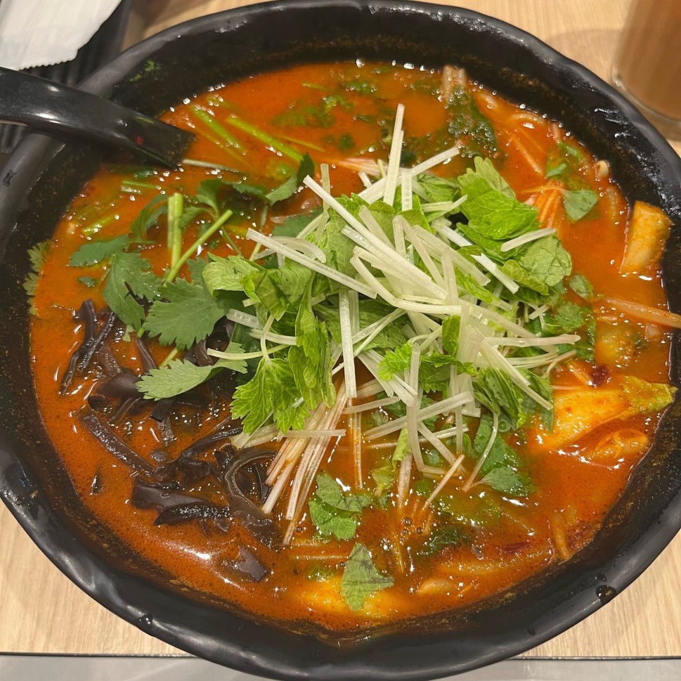 というわけで注文は、サムゴーサンラー、辛さLV.10極辛(特辣)、トッピングはチンゲンサイ、ホワイトセロリ、パクチー、きくらげです!