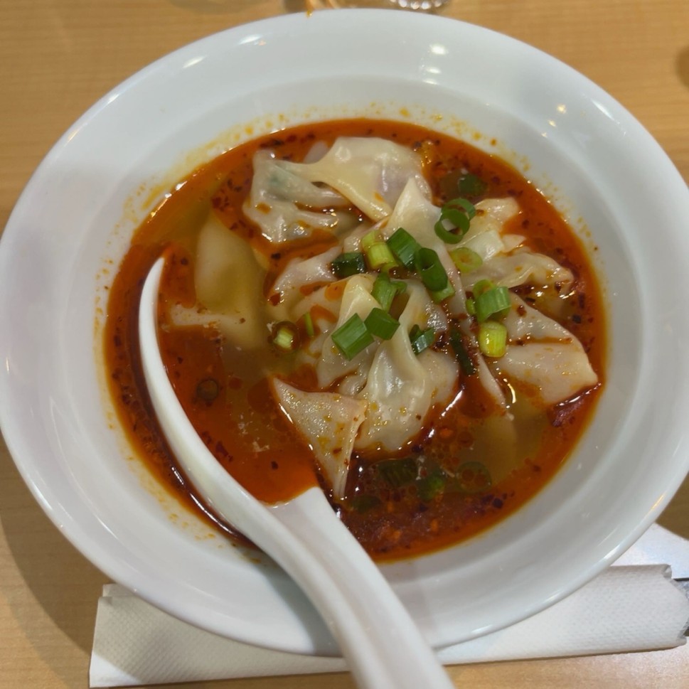ちゅるんとした雲呑はまさに雲を食べているようでした☁️辛さはピリ辛。
