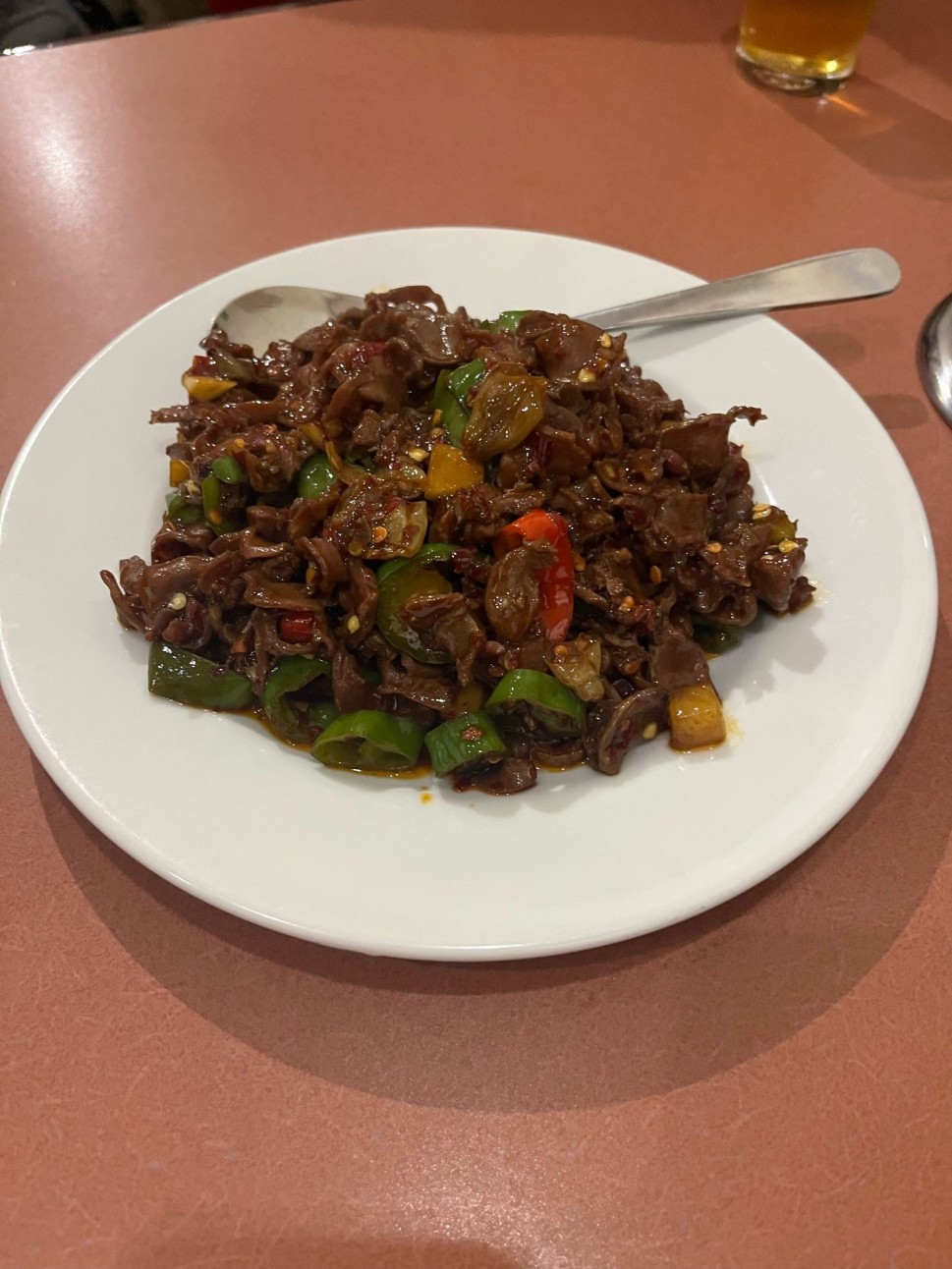 コリコリの砂肝が激辛に味付けされていてクセになる〜ご飯が進む〜