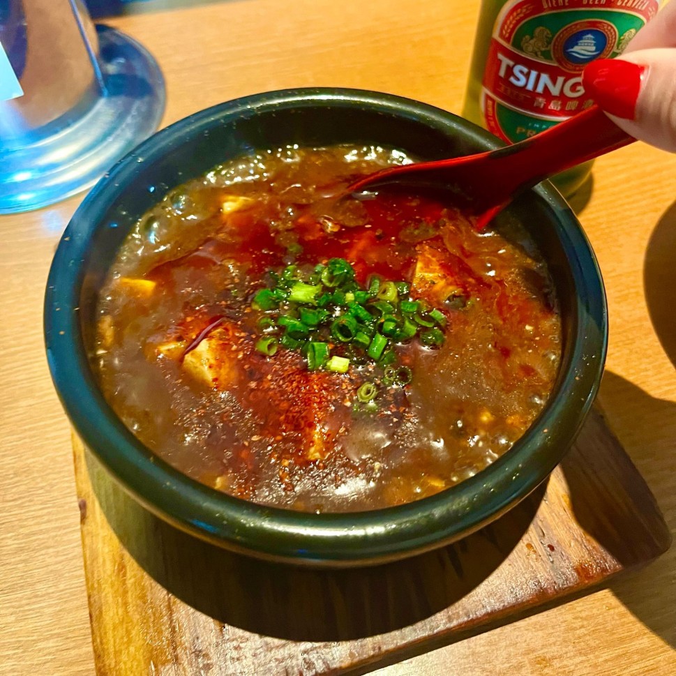 さらっとした麻婆豆腐はごはんと青島ビールがすすみます🍚🍺