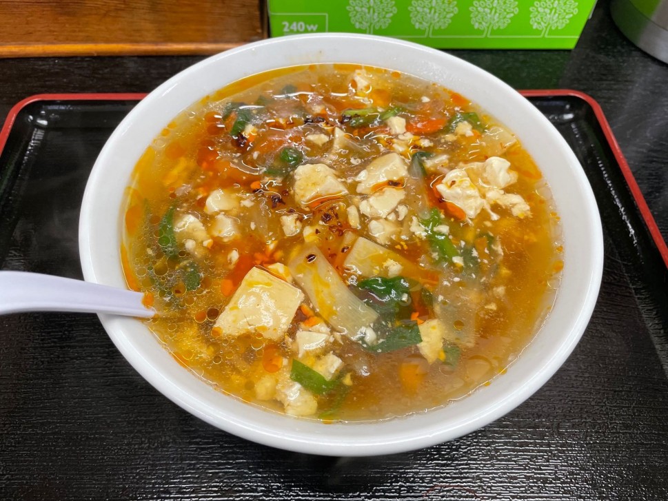 イメージはあっさりとした麻婆ラーメンでしょうか。塩ベースのスープにあんかけが溶かしてあります。