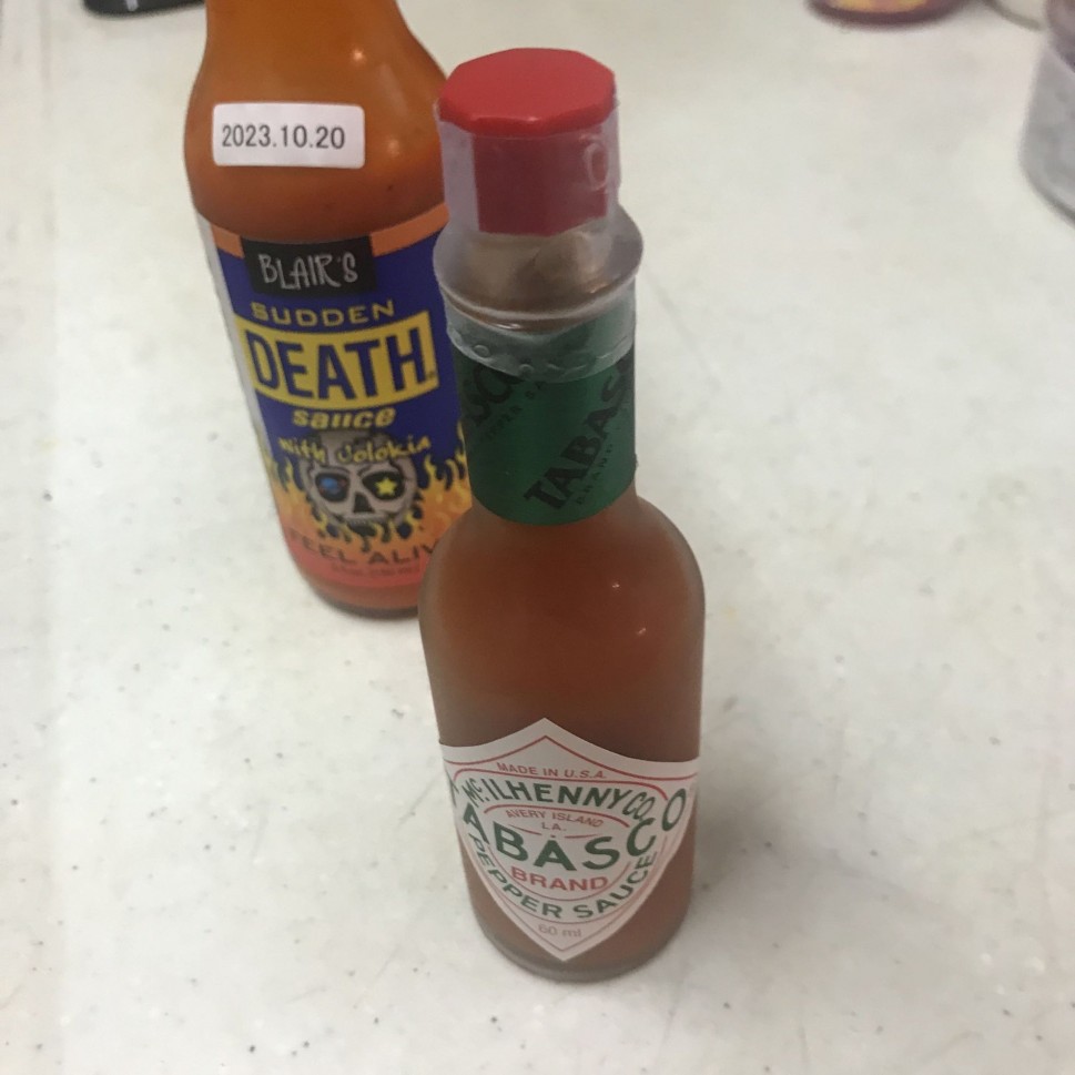 昔は僕も使っていたのですが、今は辛味の強い同じ様なソースが他にもあるので、専ら家族用に冷蔵庫に入ってます。