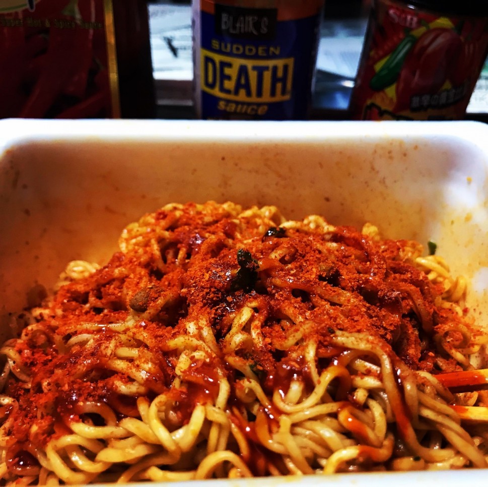 獄激辛ペヤングの坦々に、絡み増し増しで食べてます。カプサイシンソースの甘さをサドンデスソースの酸味で誤魔化してますが、やはりクセのある甘みがあり、つぎはカプサイシンパウダーを買ってみます。