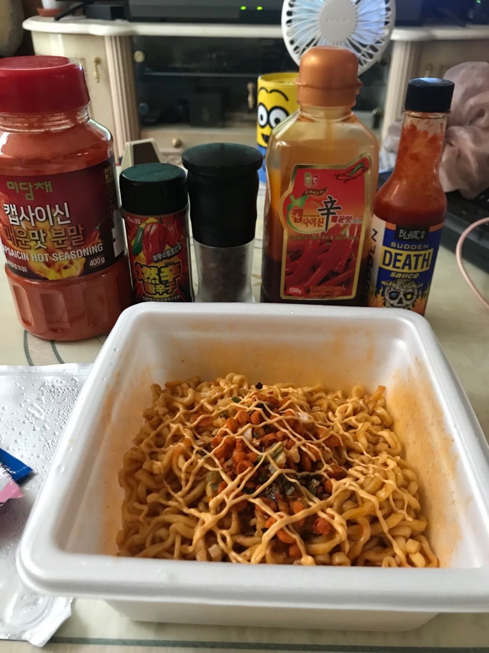 ペヤング獄激辛は、カレー×2、坦々×3、にんにく×2を箱買いしましたが、カレーが一番スパイシーで好きです。おやつに辛増しで食べてます。