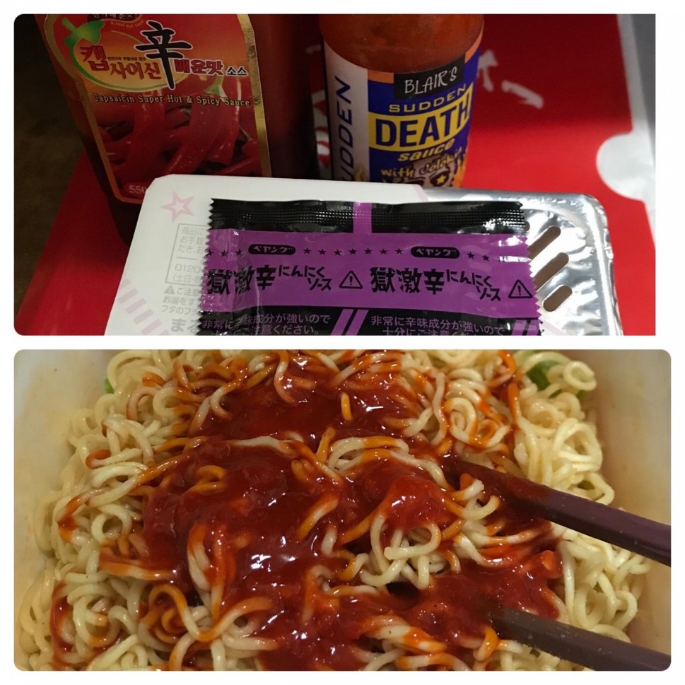 『獄激辛にんにく』等の獄激辛シリーズが辛くないので、辛味を増して食べています。