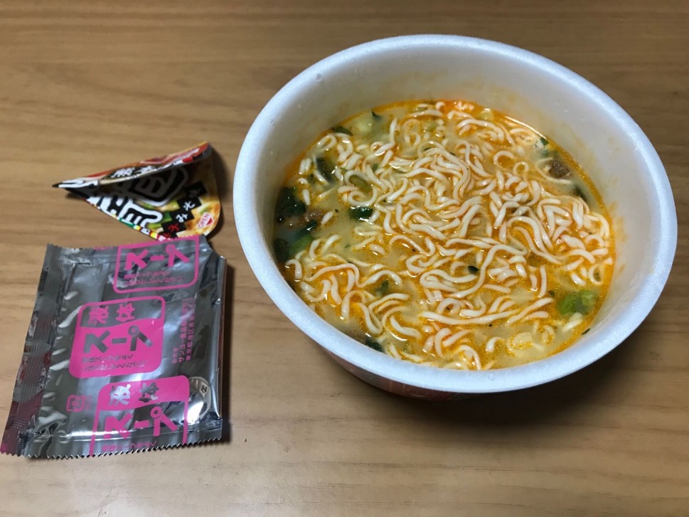 普通に美味しいカップ麺で、辛さは探さないと見つかりません。