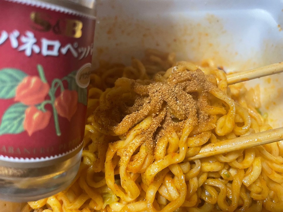 S&Bハバネロペッパーを一口づつかけて食べました。