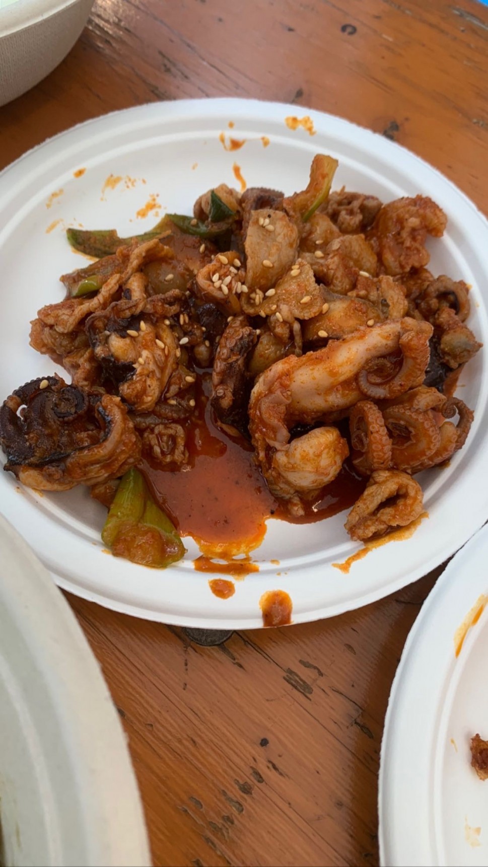 辛くないお皿を引いてしまったみたいで、韓国味噌炒めって感じでした。