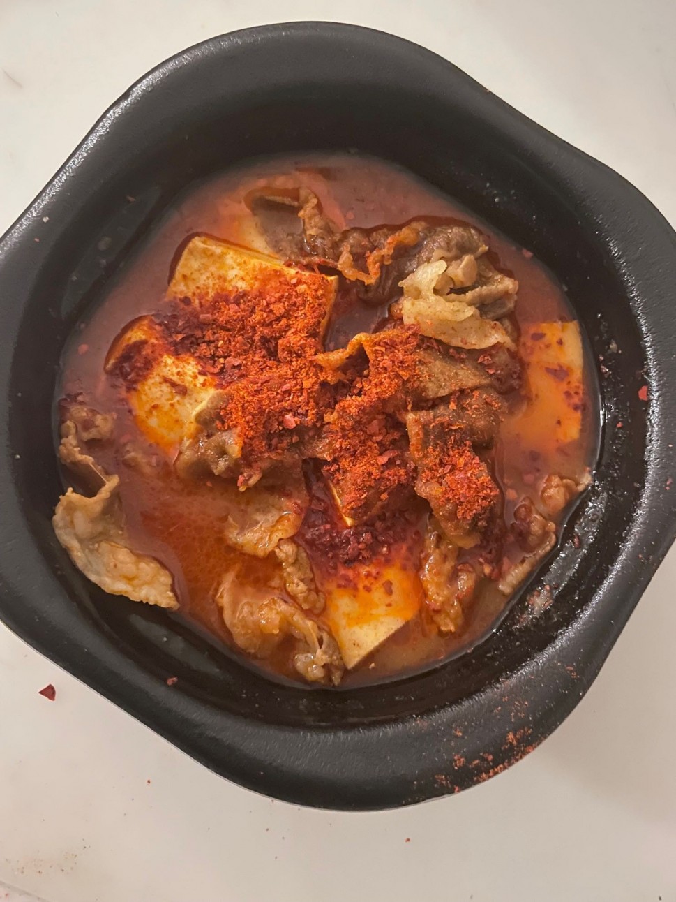 牛の旨みと辛さパンチ🌶粉末唐辛子投入で更に刺激的だけどシンプルで深い味わい醤の甘みもあって箸が進む🥢ご飯も良いけどうどんもありなかぁ🤔唐辛子の辛さもあり肉の奥深い味わいとマッチング〆は卵とじかな🤭