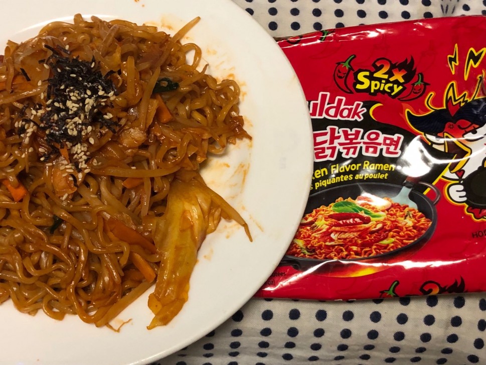 完食はしましたが、美味しく食べるには、普通の辛さのプルダックポックンミョンの方が良いです、ら