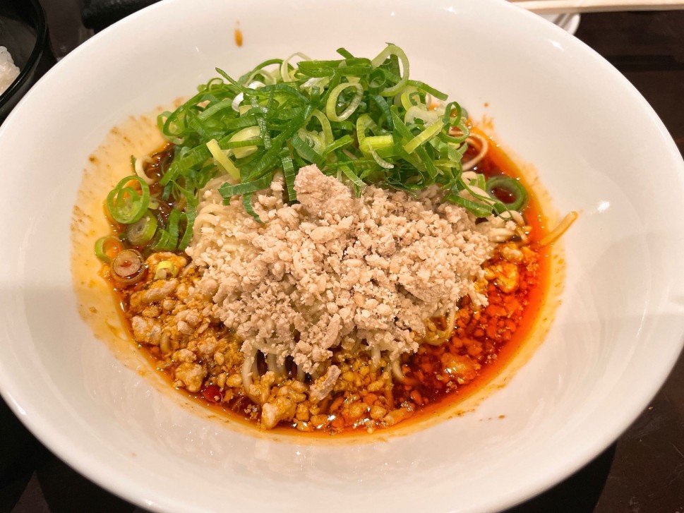 汁なし坦々麺<元祖梵天斬り>広島発祥の汁なし坦々麺🍜山椒の香と激辛ラー油の辛さで箸が止まらないです!!付け合せのザーサイこれも絶品です♪〆に挽肉とネギと温玉とザーサイとライスをかき混ぜて完食です🌶