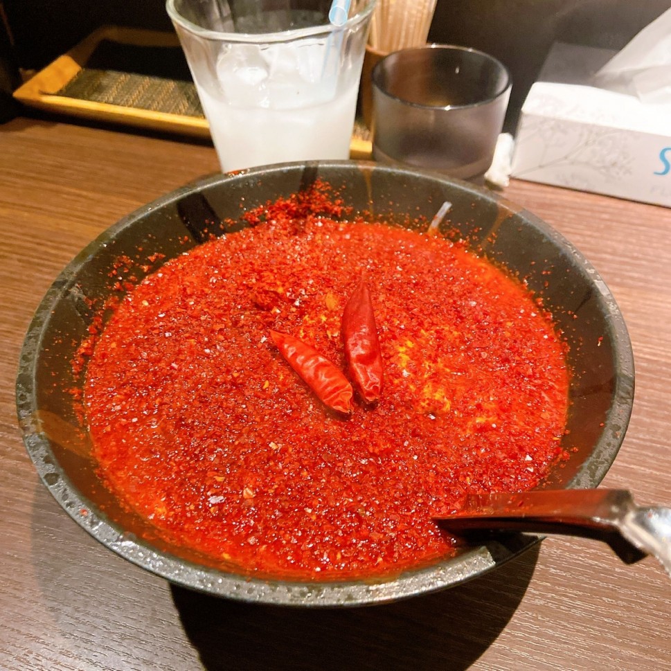 新しくなった裏煉獄!痺煉獄もあるみたいで食べてみたいです😊辛いけど耐えられる辛さでトッピングの種類も多いのがよき🙆🏻♀️🌶煉獄以上からスープがドロドロで後半は混ぜそばのようになりますw
