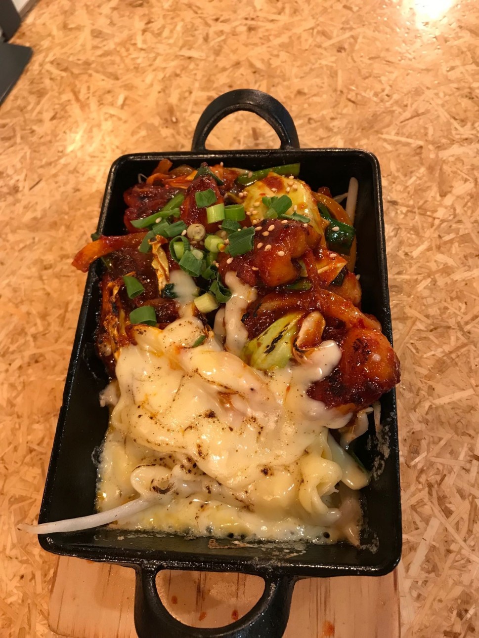 激辛メニューはトッポギ、チーズタッカルビ、チヂミとあり、チーズタッカルビを選択しました。