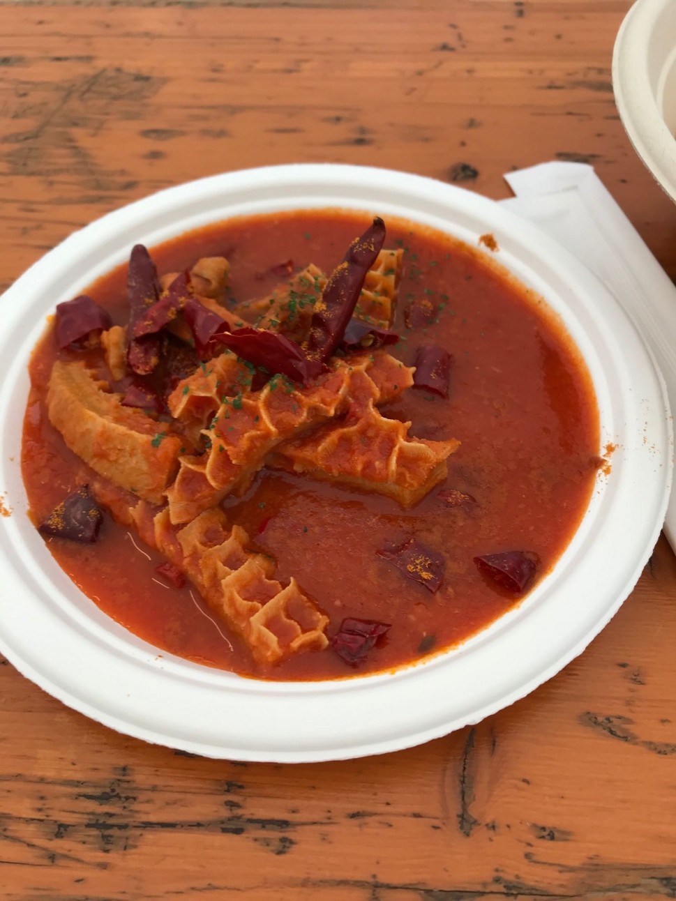 たっぷり入った唐辛子を食べての評価です。