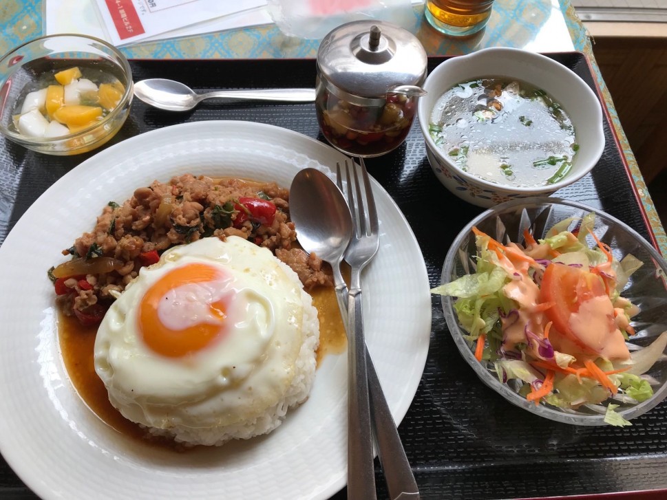 ランチメニューが10数種類あり、その中で一番辛いメニューをということでガパオライスを頂きました。