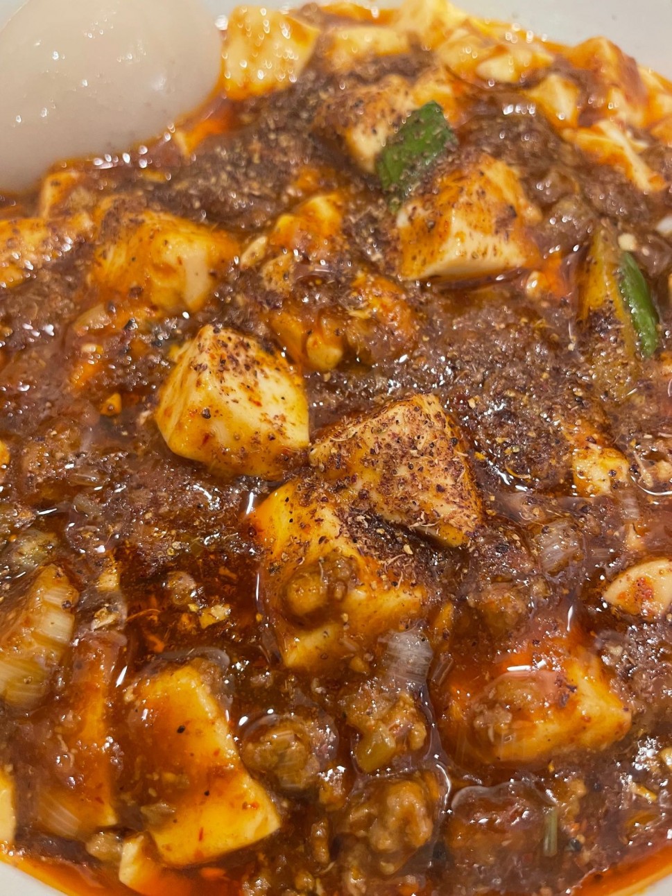 「麻婆麺×痺れ足し×ネギ」痺辛うまい🔥痺れが美味しく上品な感じ!荒々しさより旨みがつよく辛さはまぁまぁ、じんわり汗をかく感じ🔥ランチサービスのご飯が最後に麻婆丼にできて煮卵とのマッチがめちゃ美味でした👍