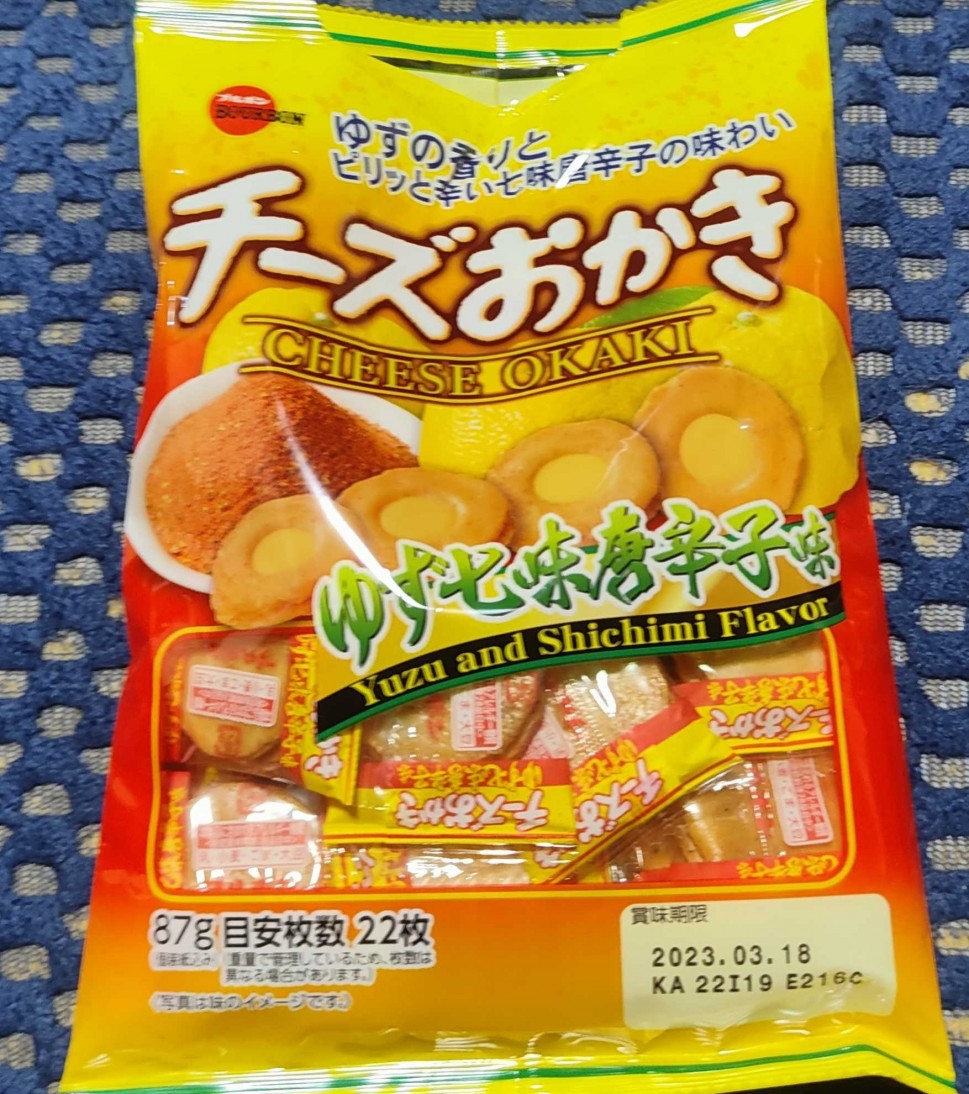 ほのかに、ゆずの香りがします☺辛味は食べた瞬間はほとんど感じられませんが、後から舌に残る感じですね(*•̀ᴗ•́*)👍後ピリ辛です☺チーズおかき、相変わらず美味いです😋