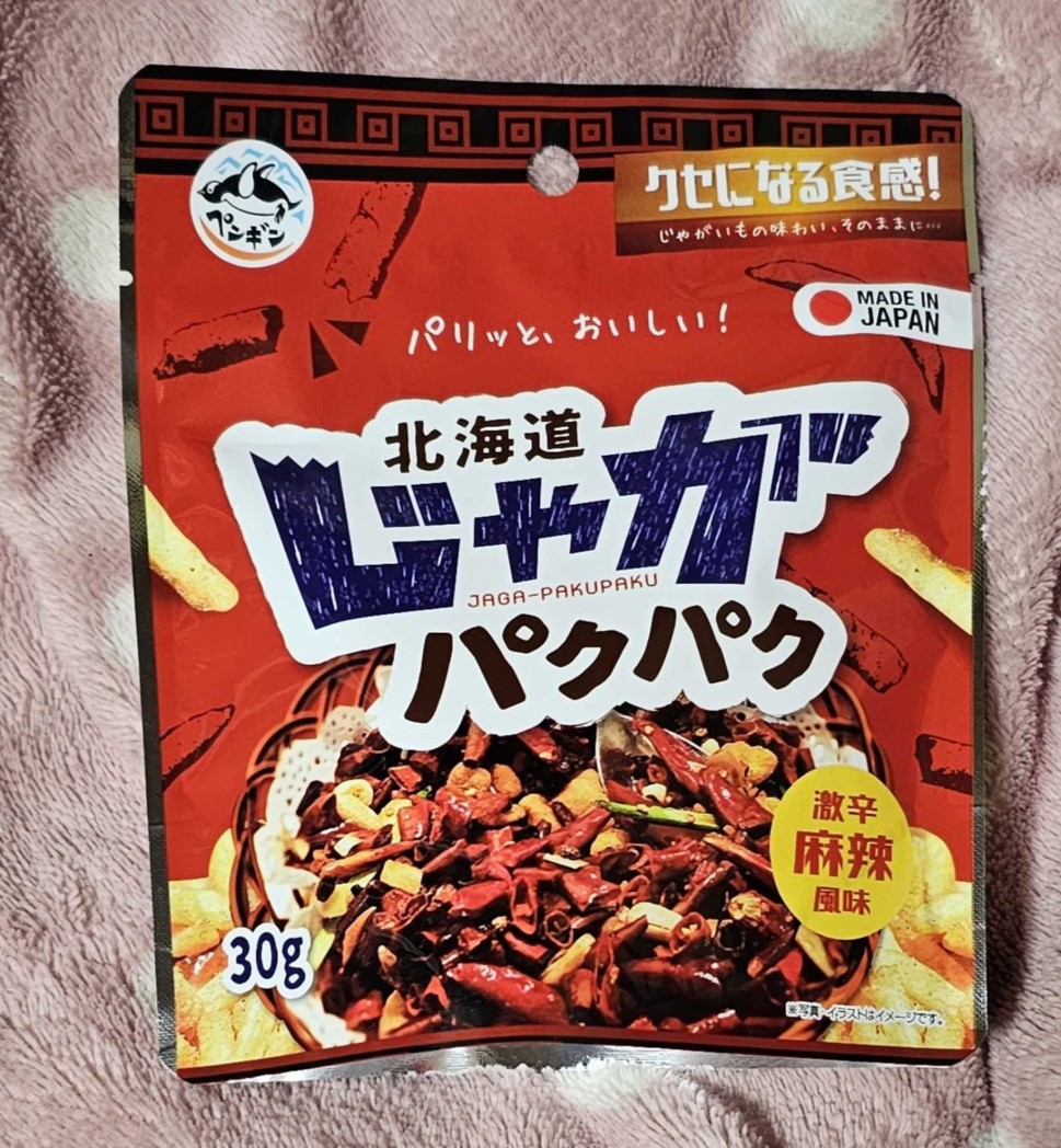 微妙なポテトスナック出ましたね🍟ちょっと値段が高いかな・・・MADE IN JAPAN商品です。麻辣風味って麻辣感は足りないですね!辛みは口の中に結構残る感じです。