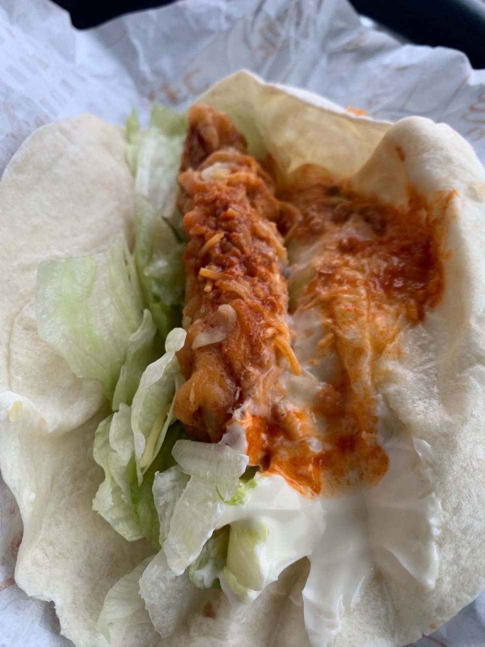 タコス風ソースで美味しいのだけど、スパイシーさは無いです