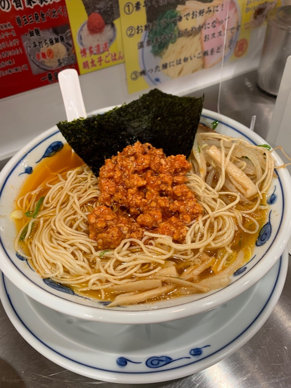 旨辛増し(激辛)トッピングの状態です。しっかり混ぜて食べると旨辛と酸味が混ざりあって絶妙なバランスで美味しいです