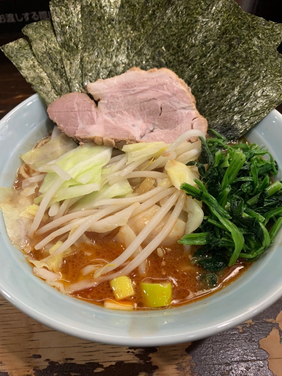 真夜中に食べた罪なピリ辛家系、辛味は卓上の豆板醤で増すしか無いけど、塩味が強くなってしまうので注意