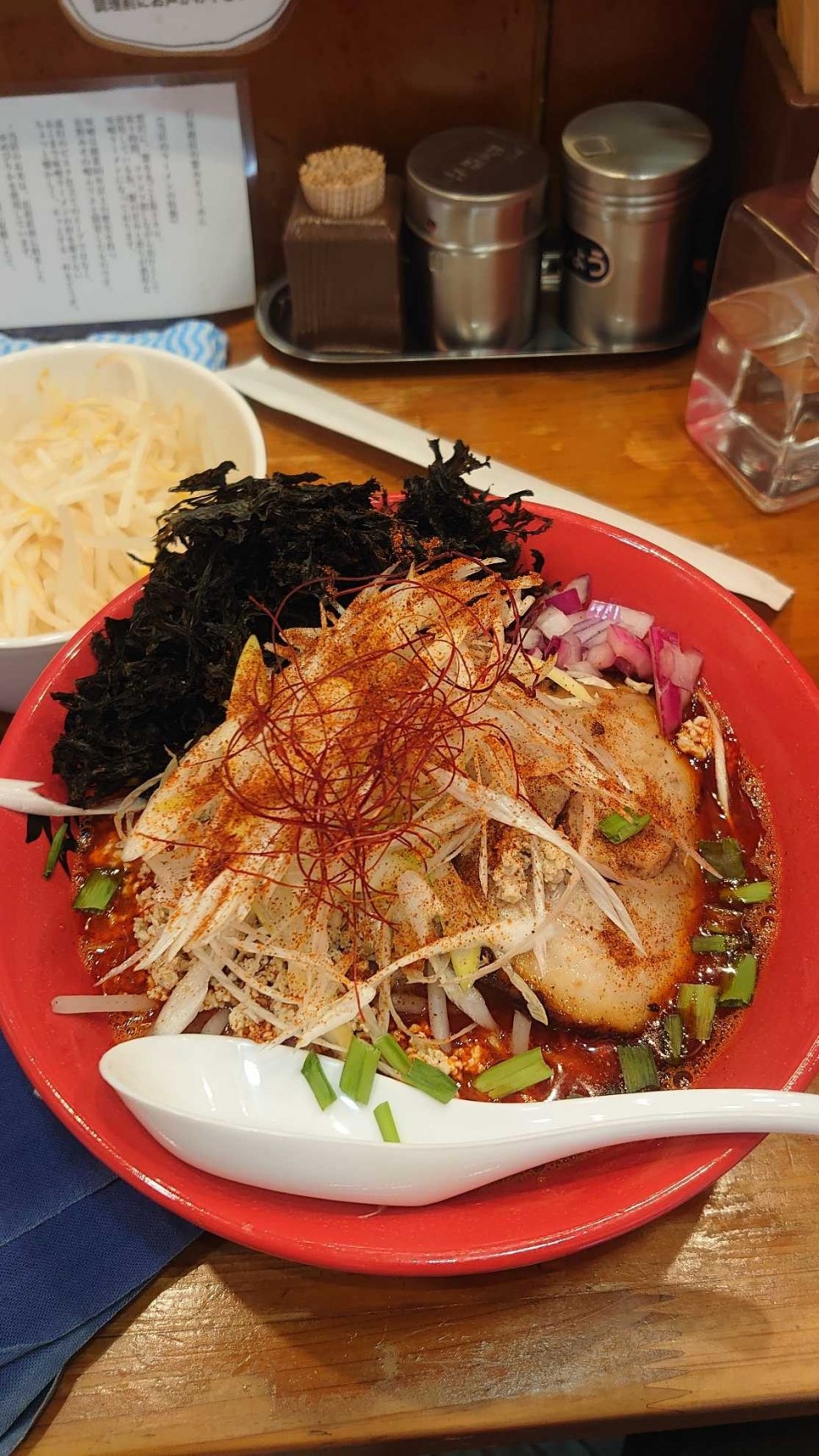 (youtube)の(鈴木亜美)さんのチャンネル(アミーゴTV)の中でこちらの一品を食べいる様子を観て自分もいただいてきましたが、まさに動画の亜美姉さんの御言葉と一緒の気持ちで美味しいんですがヤバ過ぎる辛さでその上の(雷神ラーメン)🍜🌶️⚡😈に行くのは相当先になると思います…。(ToT)💦