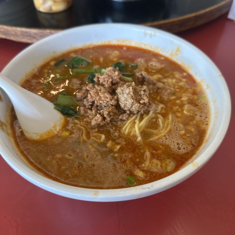 辛くはないけど、ゴマがしっかり効いてて、980円にミニチャーハン付きはコスパ最高。12時過ぎに行ったら5名並んでたけど、回転が早くすぐに着席。味も値段もバッチリで客が並ぶ理由に納得