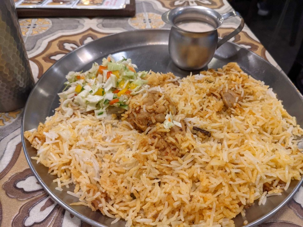 心斎橋のパキスタン料理屋、一番人気のビリヤニランチ。ビリヤニってそもそも辛くないけど香辛料系の風味がする、って認識だったけどこれはしっかり辛い!割とオイリーだったので、辛味がしっかり染み込んでるのかも。ビリヤニは食べる箇所によって味が違うのがいい。ちなみにライタもピリ辛!珍しい