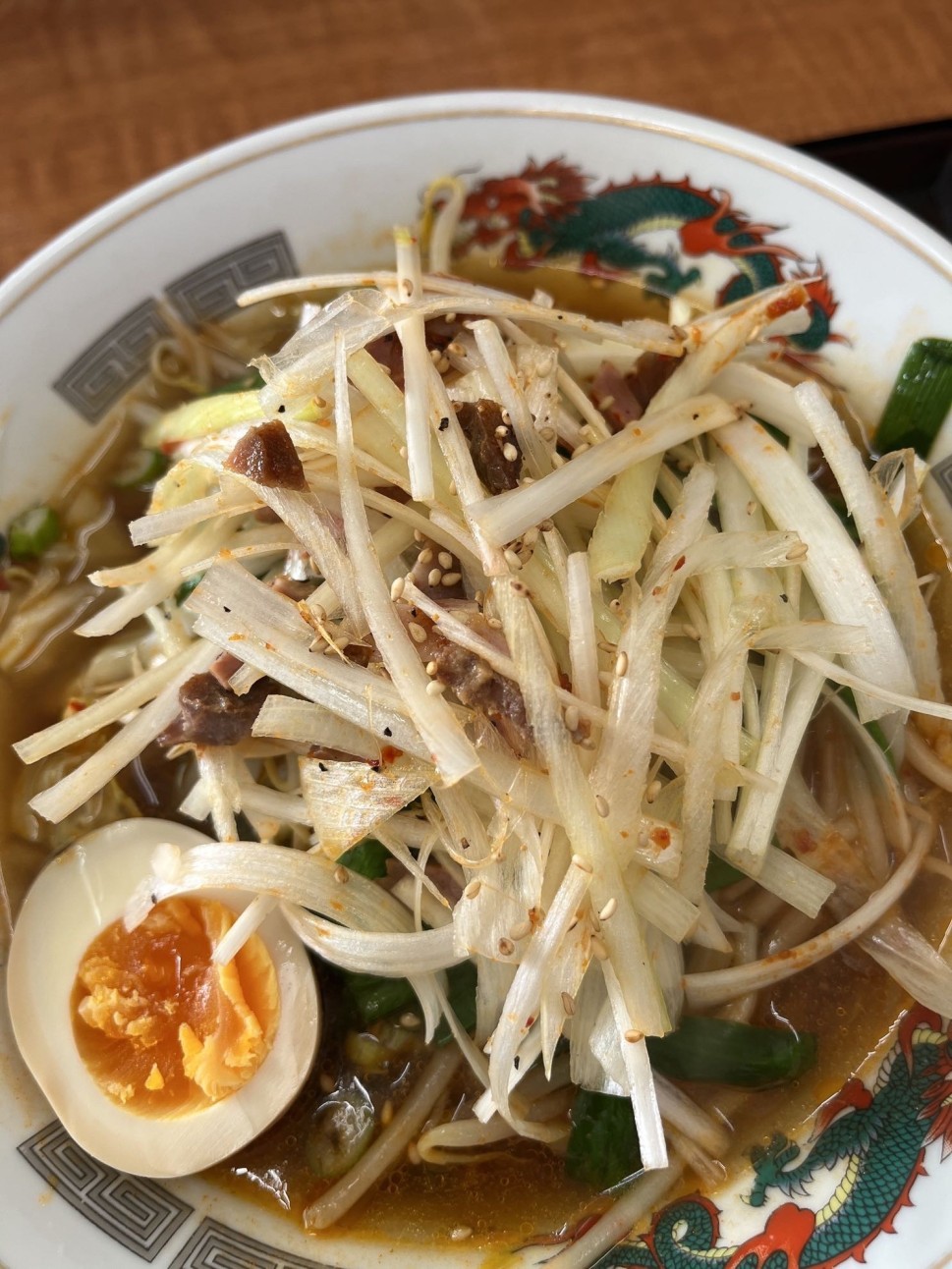 珍しい青なんばんのラーメン🍜課金してなんばんネギトッピング❗️これがシャキシャキでうまい✨他のお客さんも青なんばん注文してる人が多い印象🤔