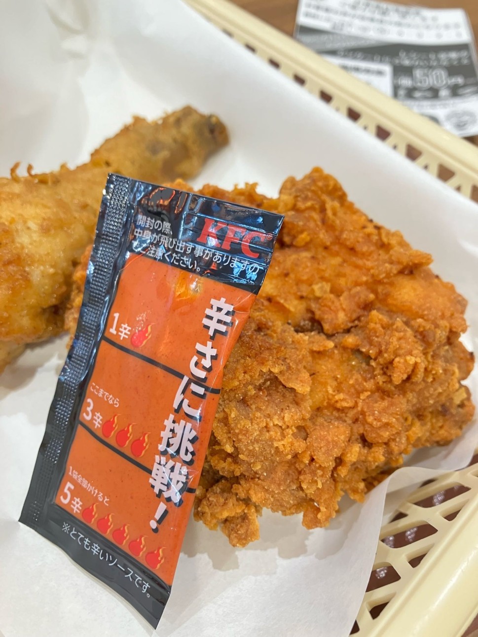 私は5辛にまでたどり着けず、3.5辛くらいの使用で終了。ソース自体は美味しいので、レッドホットチキンだけでなくオリジナルチキンにも付けて使い切り。ご馳走様でした☺️