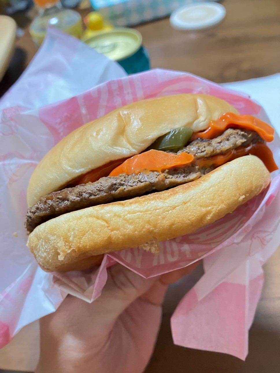 辛ダブチ、初めて食べたんですが、これ美味しいですね!チーズやソースの辛さはイマイチだけど、マックの商品にしてはハラペーニョがゴロゴロ入ってて酸味とハラペーニョの辛さが美味しいです✨