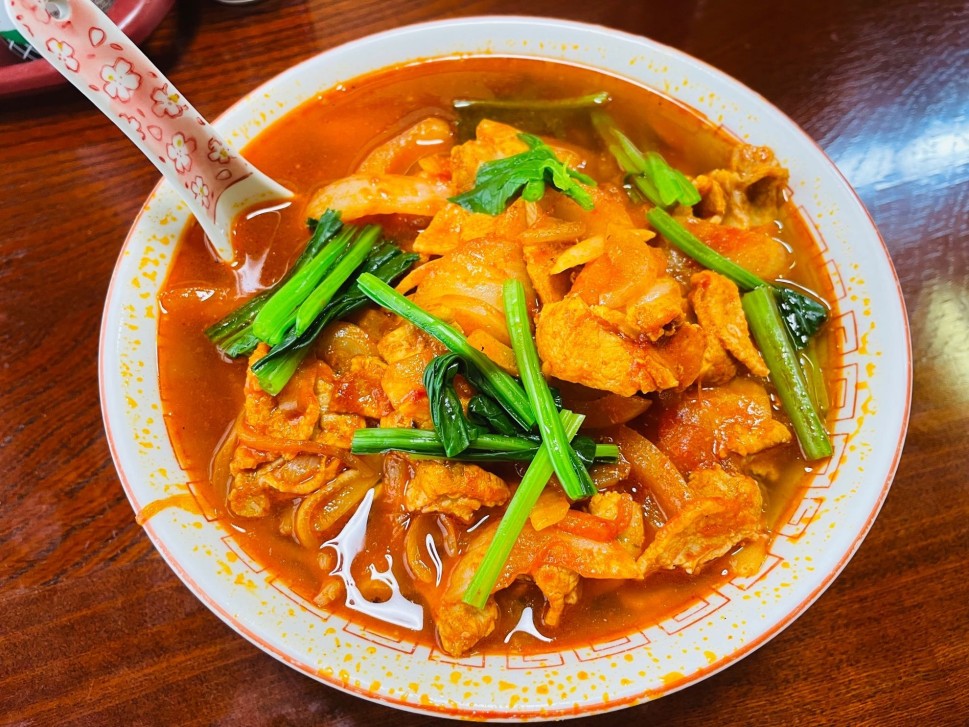 肉がかなり多めでボリュームあり。町中華系の味です。現在辛さは2辛で固定ですが希望すれば4辛とジョロキア、トリニダードスコーピオンが入れ放題となります。ご主人が唐辛子を栽培しているため運が良ければ1瓶いただけることも。