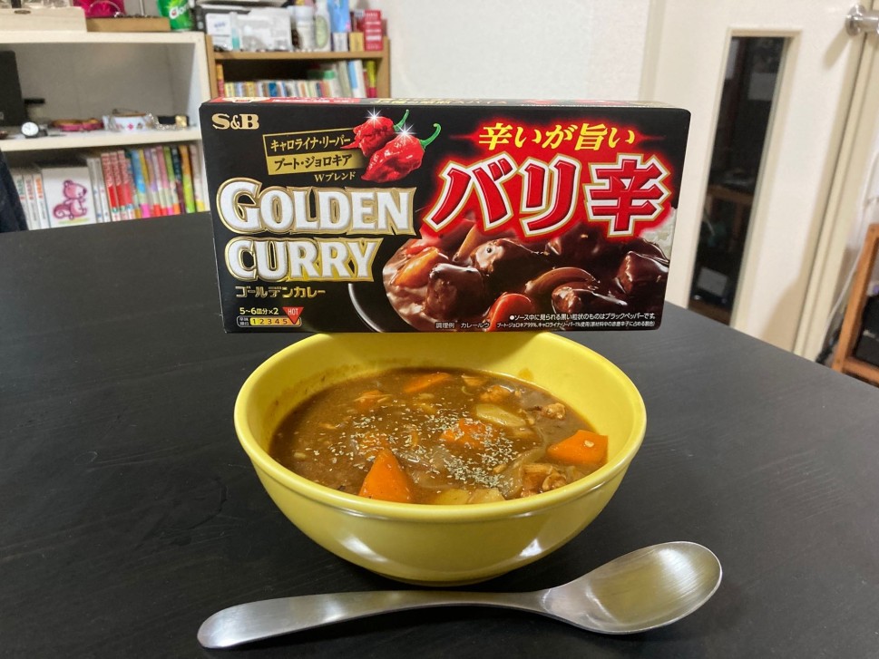 冷蔵庫にやや古い玉ねぎ人参じゃがいもが居たので久しぶりにカレー作りました、美味しいけどバリ辛は言い過ぎかもしれませんね!
