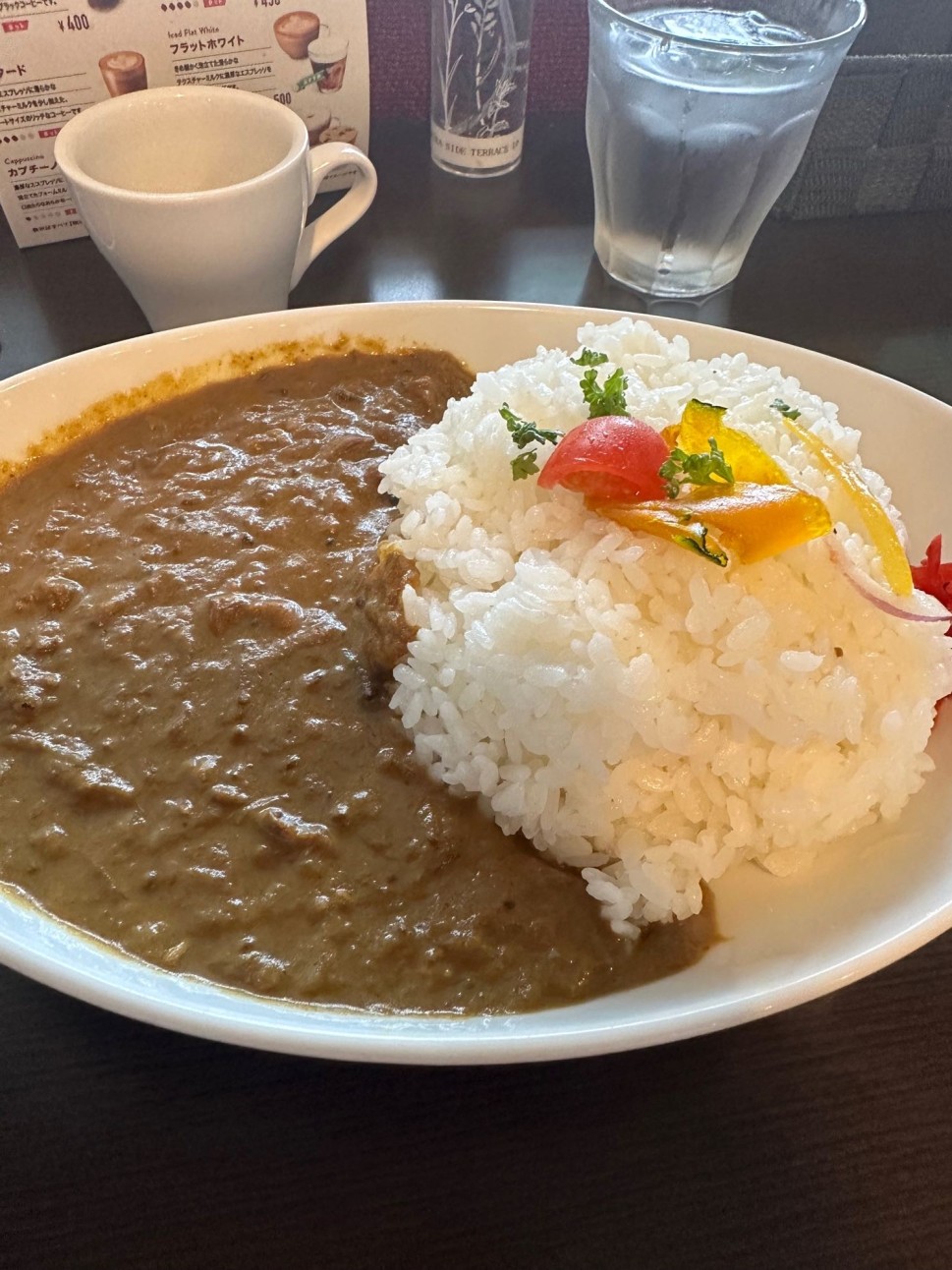 パスタ屋さんのカレーライス。スパイスが効いていてクセになります。写真は中盛りで辛さはオリジナルのみで強めのピリ辛です