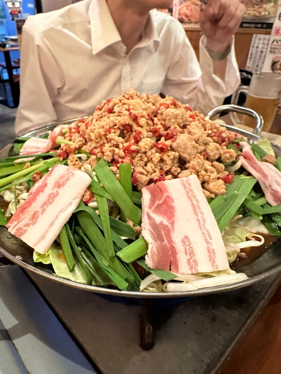 台湾ミンチとニラ、キャベツそしてシマチョウがナイスコラボです。辛さは3段階あってこれはオリジナル。ピリ辛で美味しく3ターンしてしまいました