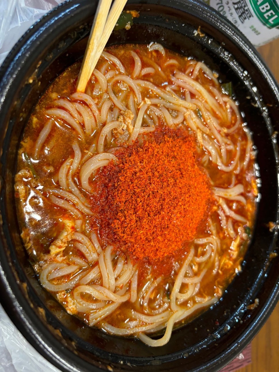 写真の向きが変えられません💦笑Uberで注文!!こんにゃく麺でちゅるちゅる食べられて辛くて美味い😋辛さは感じるのに、舌には残らない、お腹もかっかしない、もう1つ上の段階に行ってもいいのかな?!