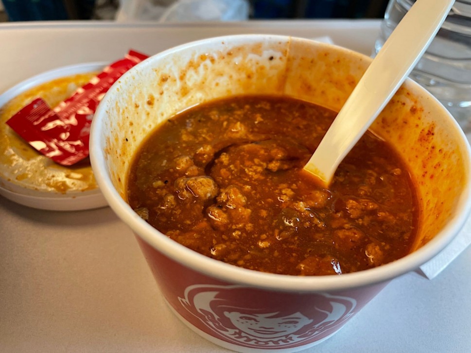 いわゆるチリビーンズだけど、けっこう、スープっぽい。