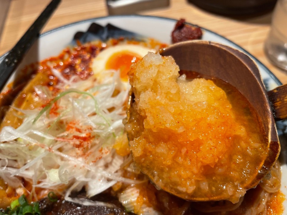 柚子辛紅らーめん6丁目に、大根おろしをトッピング!少し辛さも中和されてマイルドに、さっぱりと食べられてこれもまた美味しい😋