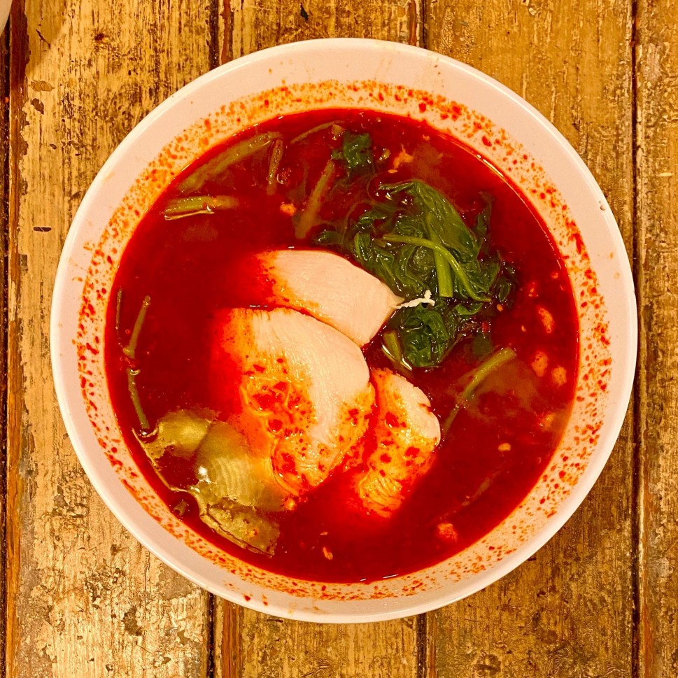 恵比寿駅前のタイ料理屋アジアン屋台バルクアトロの地獄フォー!!!!が地獄すぎて全然食えずみんなにあげたよ。辛さは一丁目〜三丁目まであるけど地獄加減は店主の気まぐれぽい。多分今日は四丁目くらいだと思う。デスソースまみれかと思いきや唐辛子だけでこの味だという返答。マジか🩸
