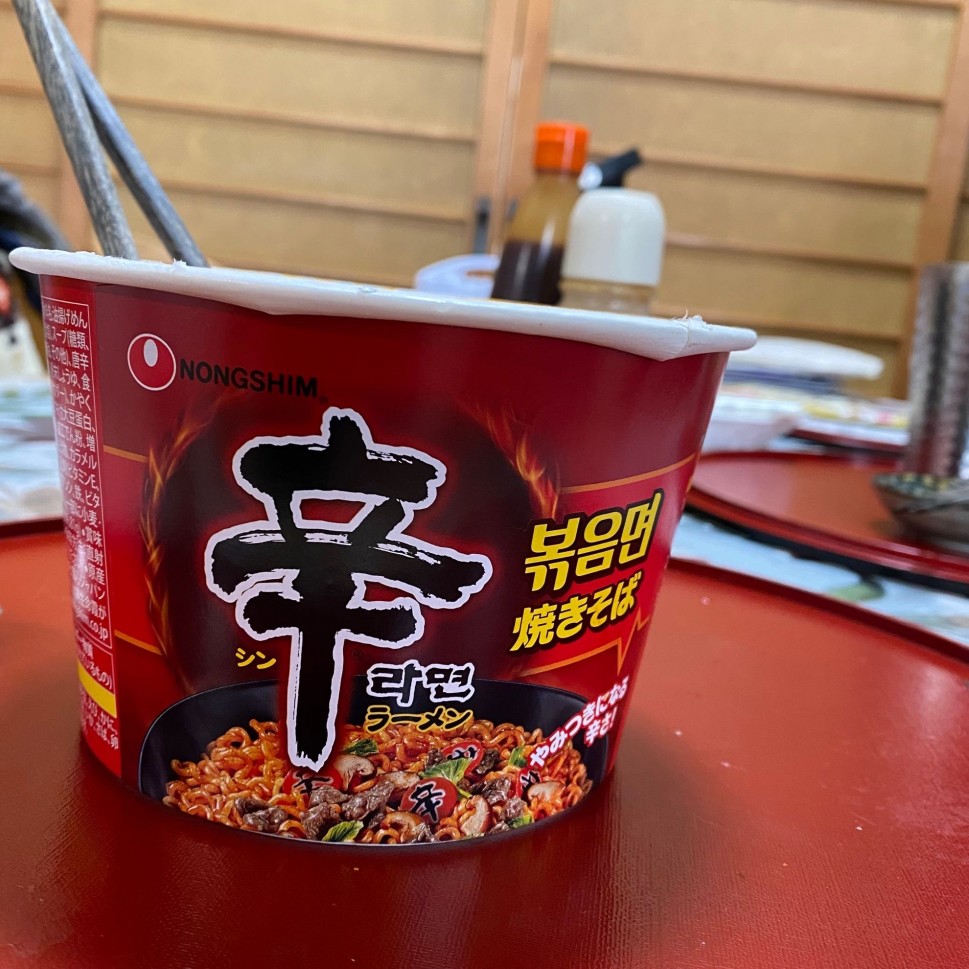 辛ラーメンシリーズ、そんなに辛くないよなーと思っていたら、今まで食べたシリーズ中で1番辛かったです。激辛ペヤングくらいの辛さかな?それに韓国料理ならではの甘さやスパイス感もある感じ。汗が吹き出してます。