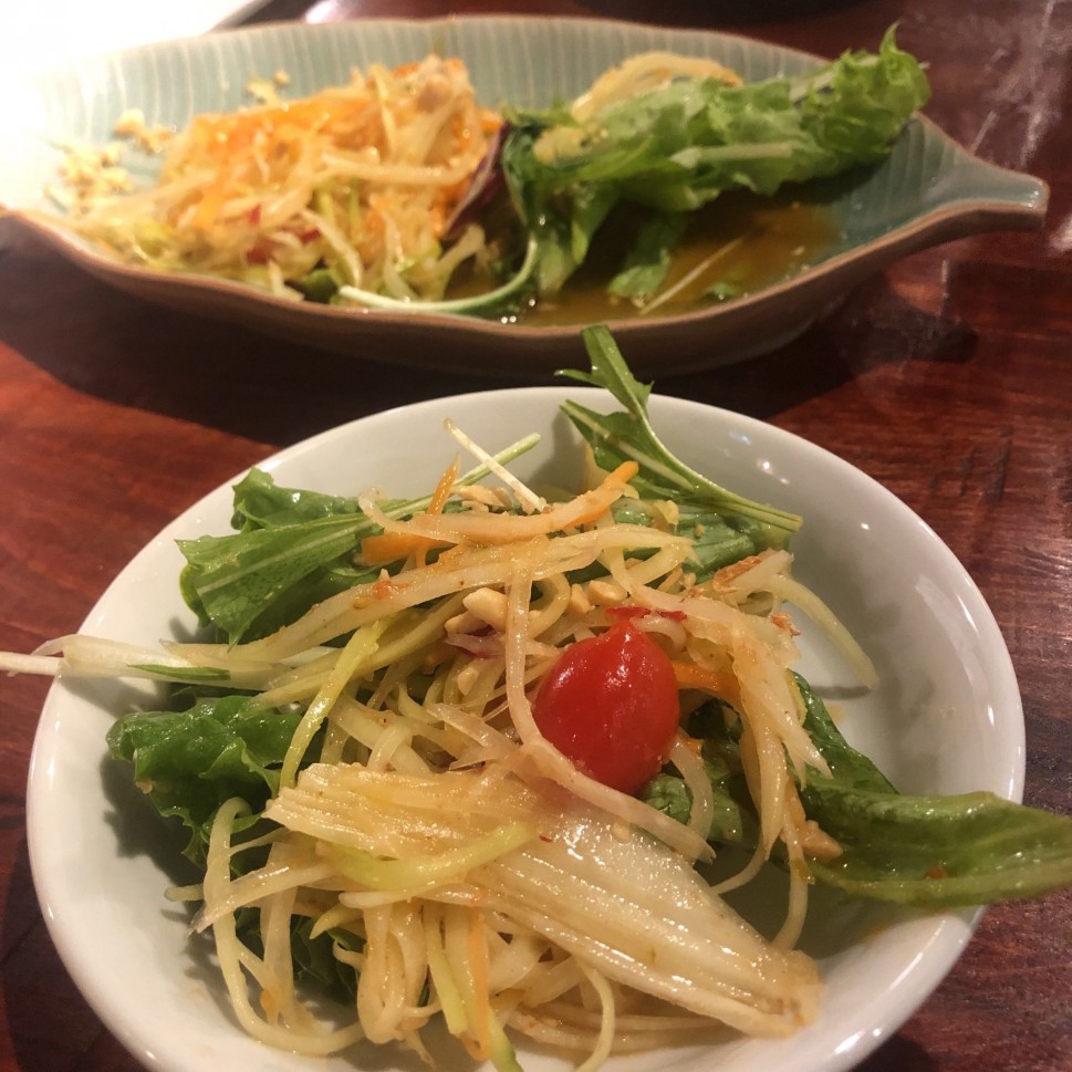 奄美大島の農家直送の青パパイヤで作ったソムタム 1.5辛