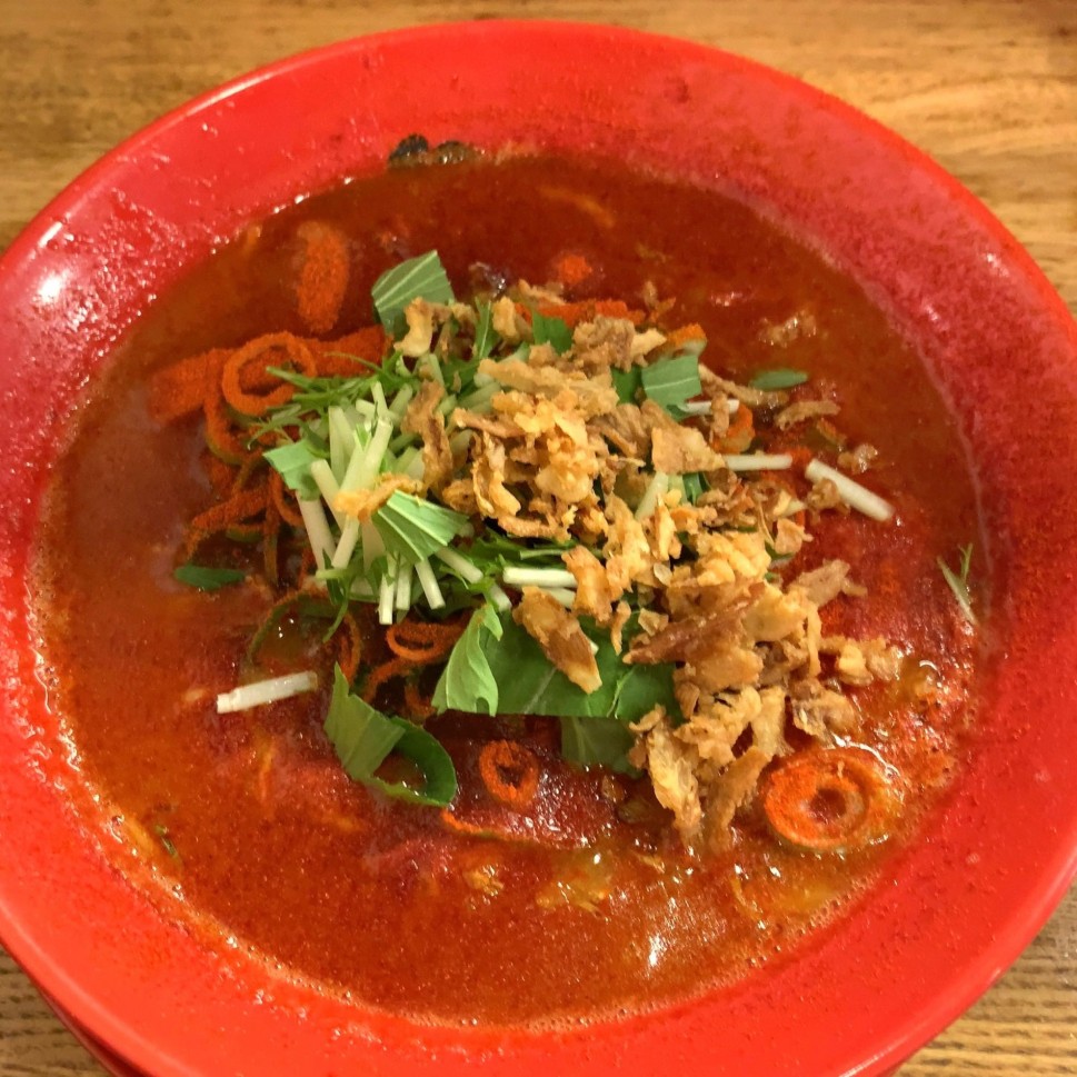魚粉香る美味しさに、ピリッとした辛さがあって美味しいです。辛さは2だと普通の辛さで、中本の蒙古タンメン辺りでしょうか。