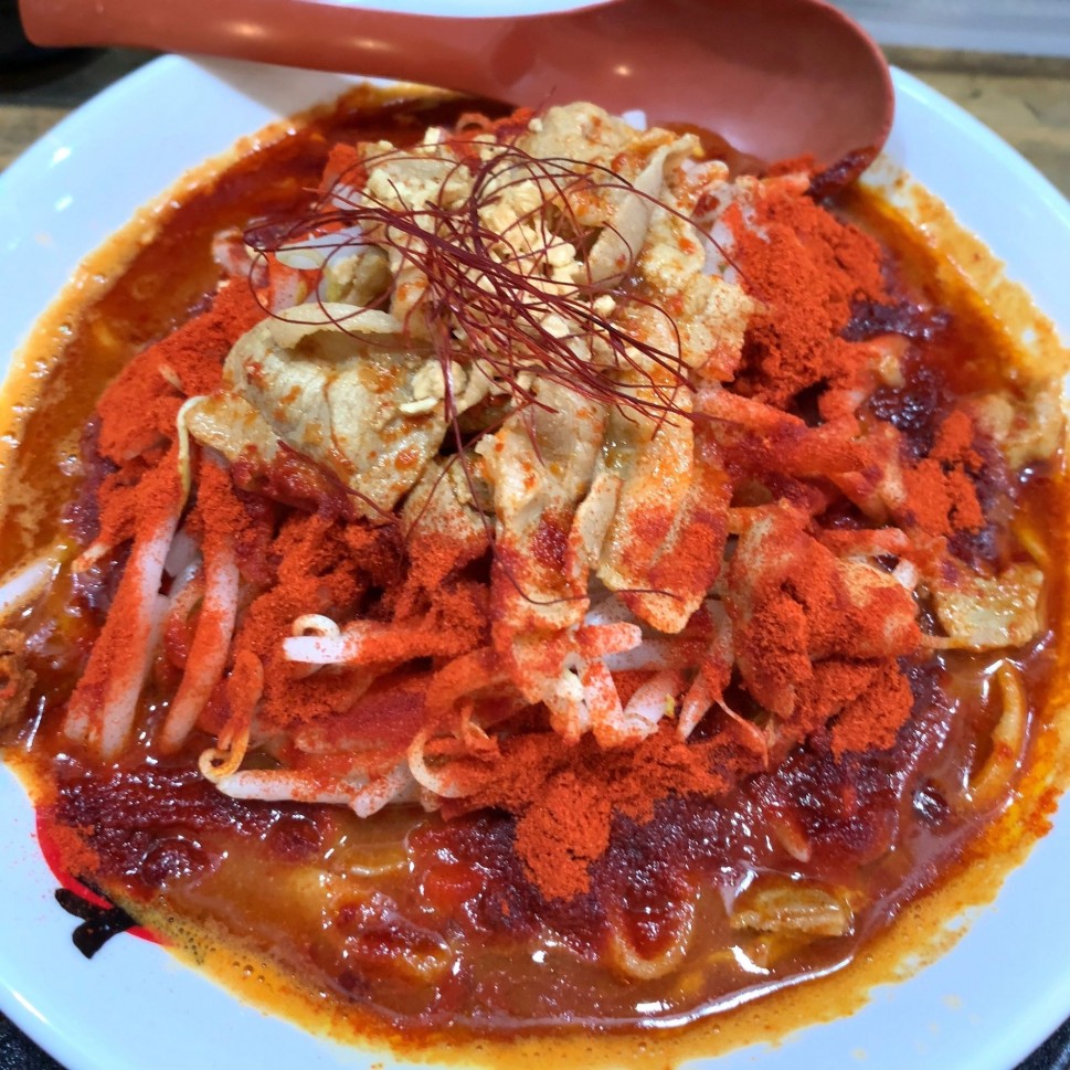 土曜日の昼下がり、券売機見ると鬼虎の表示がなくなってるよ?まあお初だから激辛でいいしとポチりました。