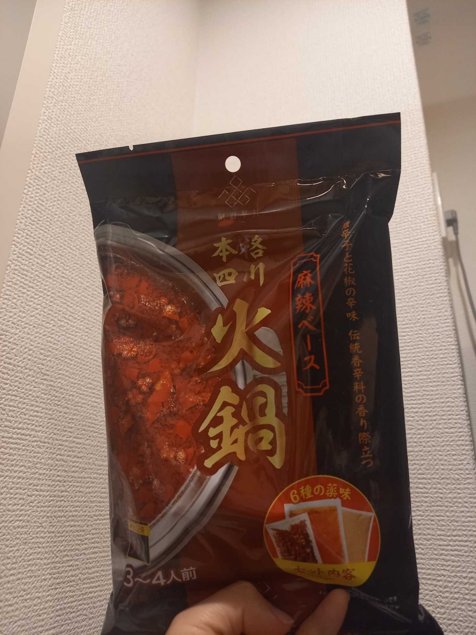 業務スーパーで購入。唐辛子の輪切りがたくさん入ってたけどスープに辛さはほぼなかった。山椒の実を噛むと痺れがくるくらい。黒いタバスコ入れて辛くして食べた。においは本格的!!お家でこれができるのは嬉しい。見つけたらまた買います。