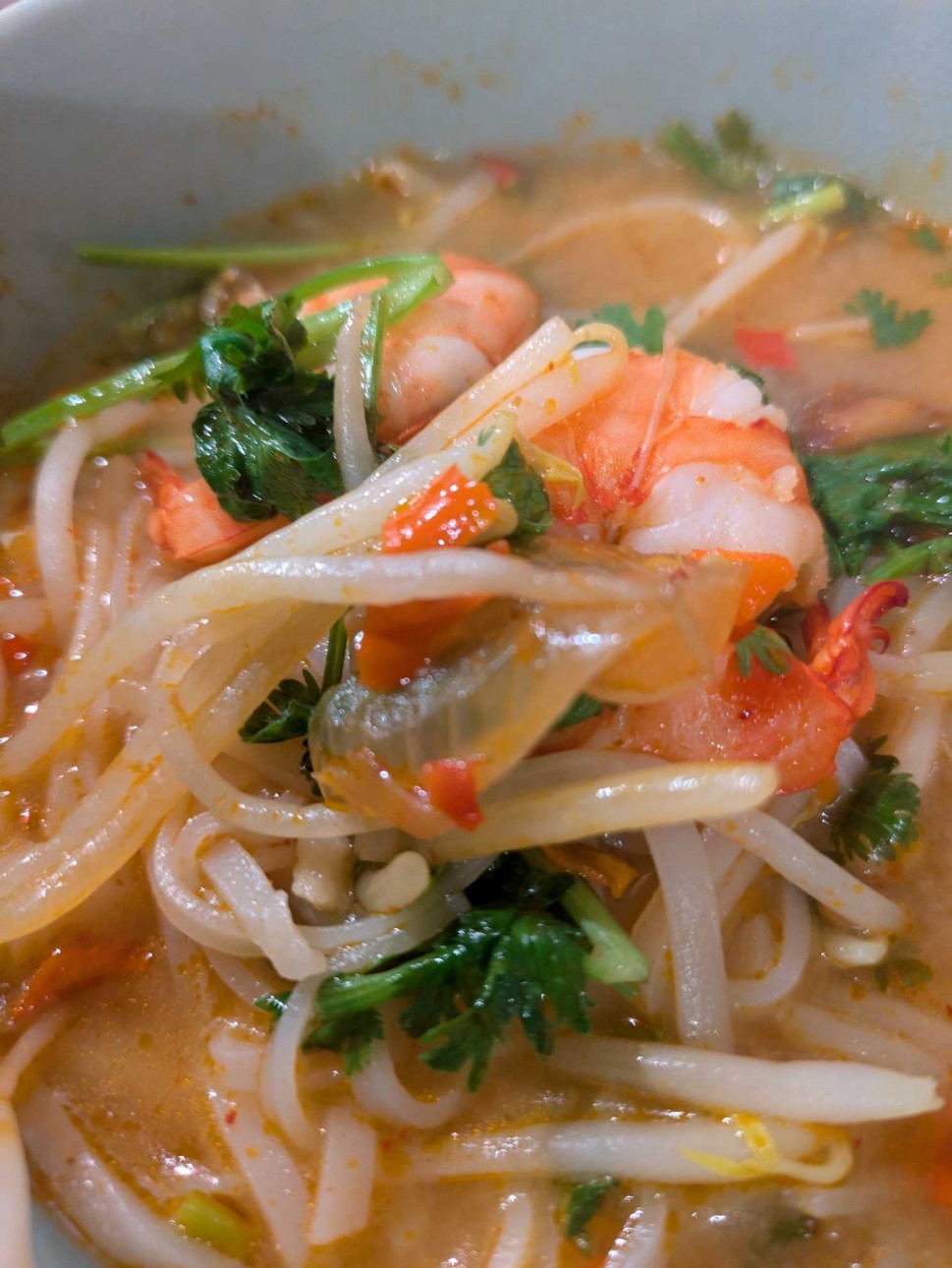 海老のダシとアジアンなハーブがしっかり利いたスープは米麺特有の柔らかな喉越しにぴったりで美味しかったです