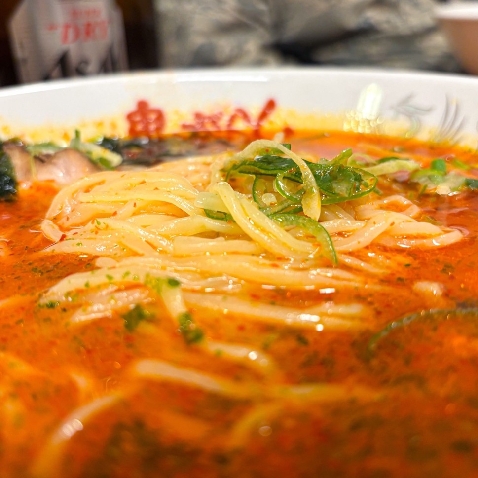 まずは、おつまみメンマに辣油をまわしかけてビールのおともに。雪が降る夜に皆んなで行くラーメン屋さんって良いですな。青海苔の香りが好きでっす。マイ辛なんだけど、翌日しっかりおしりに噛みついてくるタイプです。