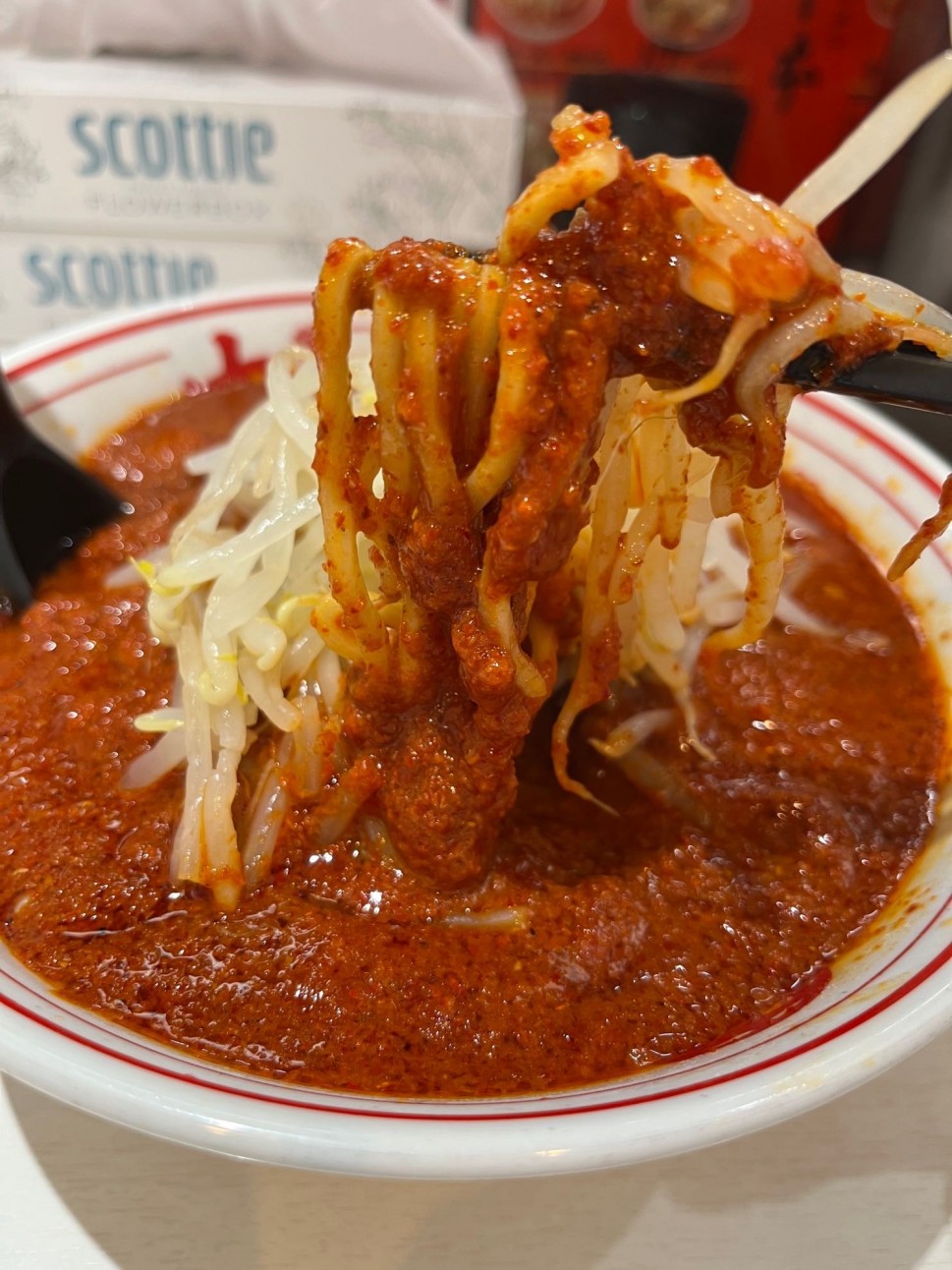 確かに辛い。けど美味い♪エプロンつけたけどその必要がないくらい汁がない笑!辛さは想定内だけど熱くてなかなか進まない…20分程で完食。ただしお腹は火事になるため、牛乳や飲むヨーグルトなどでの鎮火は必須!
