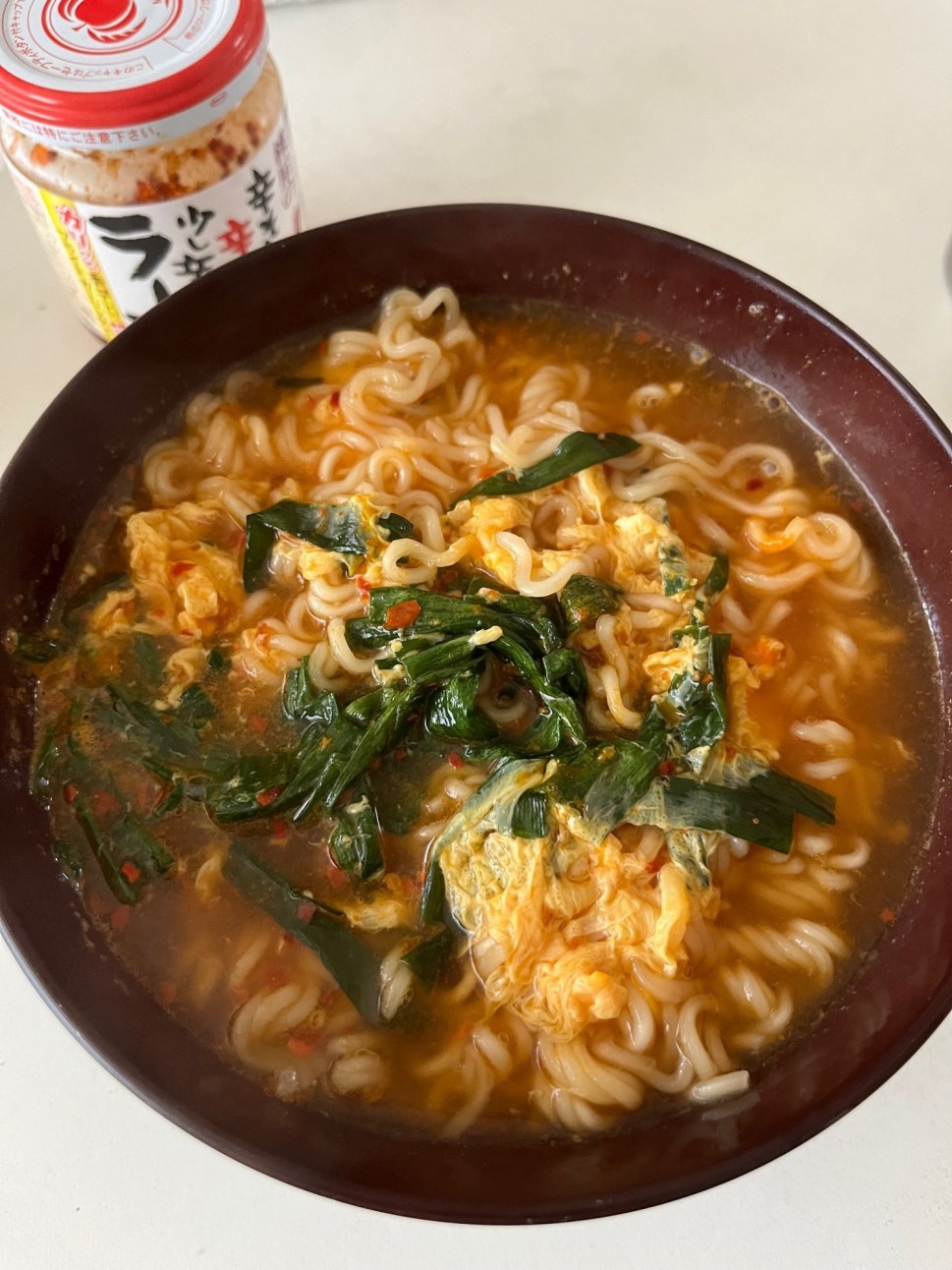 卵とニラとニンニクを追加したので純粋な辛さとはズレますが…1口目からしっかり辛さは来ます🌶インスタントにしては辛さがある方だと思います、旨辛。個人的にはもっと辛くていいです。