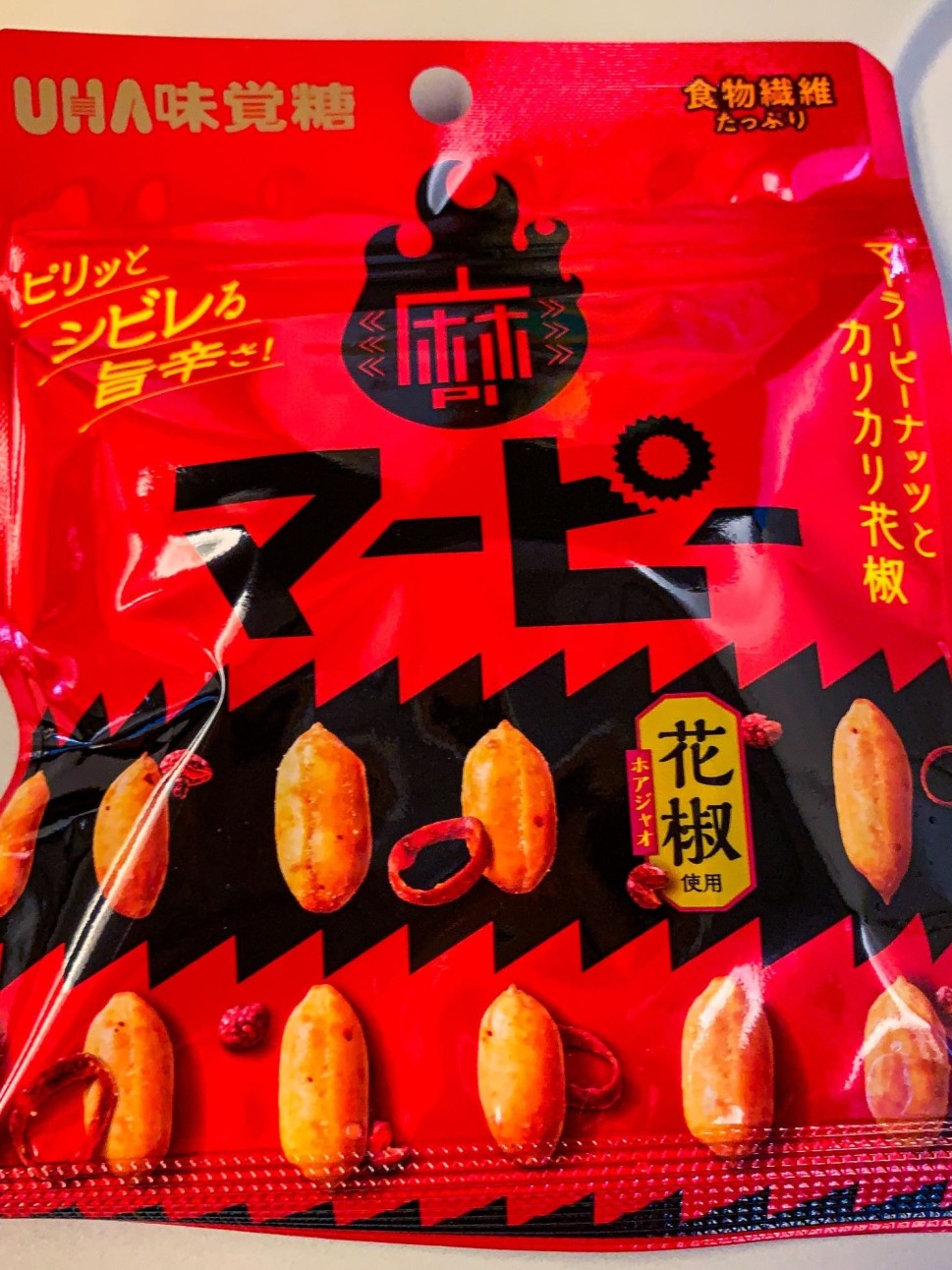 同社の 麻ピー にも、同じく マーラーピーナッツとカリカリ花椒 というのがありますが、味付けが違います。